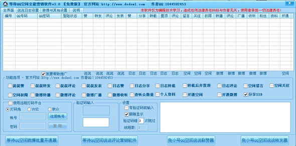 等待QQ空間全能營銷軟件是目前市場上QQ營銷系列中功能最多并且免費的qq空間營銷軟件,目前軟件共18項功能支持多線程操作經測試每分鐘可執(zhí)行數(shù)百個帳號的廣告發(fā)布,并且無需切換IP,軟件廣泛應用于淘寶店鋪,網站推廣,淘寶客,網賺等。