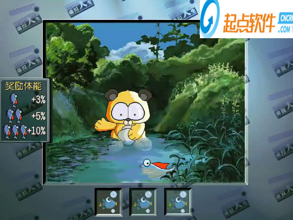 個人認為這個小游戲最難,當有魚經過時按空格鍵或回車鍵抓住,長時間不動的話狗熊會打盹睡覺,按鍵將他叫醒,但判定很有問題,獎勵體力值的小游戲。