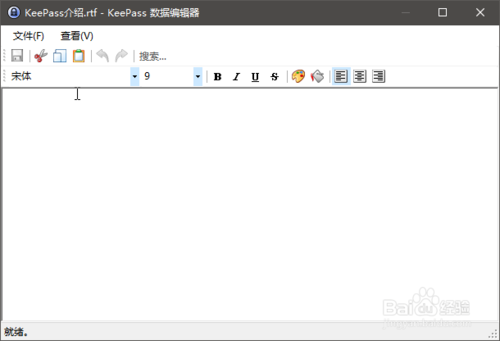 新建rtf格式的附件后,點(diǎn)擊 打開(kāi) ,在打開(kāi)的 KeePass數(shù)據(jù)編輯器 里可以編輯rtf文件,編輯完成后點(diǎn)擊 保存 。
