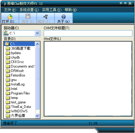 2、使用易峰Chm制作大師打開,設(shè)置CHM編譯選項(xiàng)