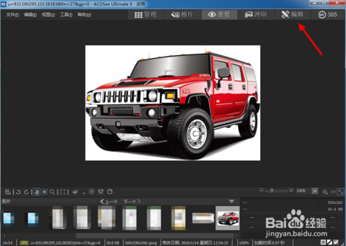 acdsee怎么合并圖片首先在軟件中打開要合并的第一張圖片,然后點擊右上角的“編輯”。