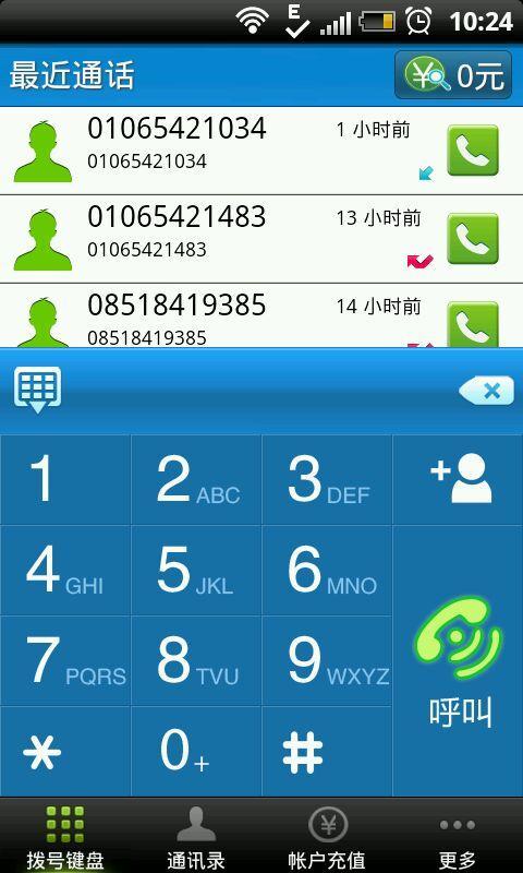安卓無(wú)憂CALL網(wǎng)絡(luò)電話撥打國(guó)內(nèi)任意固定電話和手機(jī)統(tǒng)統(tǒng)只要0.5分/分鐘還顯本機(jī)號(hào)碼。無(wú)憂CALL撥打國(guó)際號(hào)碼超便宜實(shí)惠,像撥打加拿大等主流國(guó)家僅需0.16元/分鐘起,非常劃算!