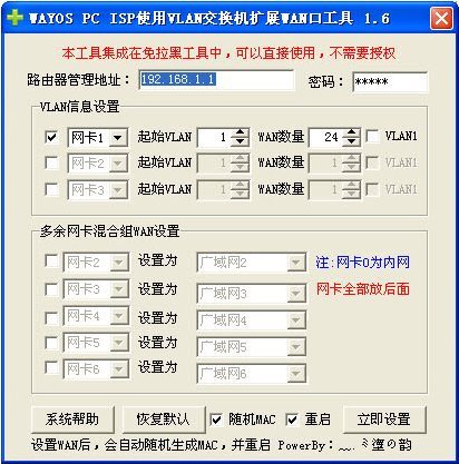 wayos軟路由擴(kuò)展wan口工具是一款幫助wayos路由器擴(kuò)展wan接口的工具。該擴(kuò)展wan口工具除了免拉黑本身的功能要授權(quán)外,其他的都可以直接使用的!