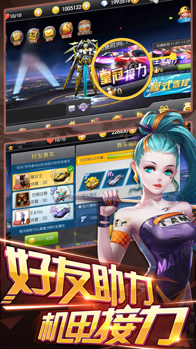 和你的微信好友、QQ好友一起比拼,看看誰才是飛車之王!隨時(shí)隨地向左右人展示你的技術(shù)、向他們發(fā)起挑戰(zhàn)??焖俚慕咏粋€(gè)又一個(gè)好友,加速從他們身邊駛過,直到行駛在隊(duì)伍的最前面。
