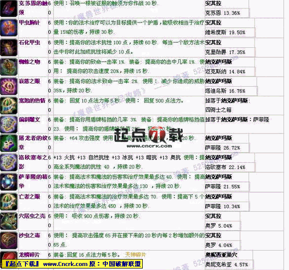 魔獸世界極品攻略 參考中英文六大數(shù)據(jù)庫(kù),匯總4000件紫、藍(lán)色裝備的屬性和來(lái)源。其數(shù)據(jù)的全面、準(zhǔn)確、深入、細(xì)致不僅超越了國(guó)內(nèi)各大游戲網(wǎng)站,而且比各大游戲數(shù)據(jù)庫(kù)更勝一籌。     不論你是新人還是骨灰級(jí)老玩家,本攻略都能告訴你從來(lái)沒(méi)見(jiàn)過(guò)的裝備;不論你是休閑玩家還是各種刷子,本攻略絕對(duì)能提供你最需要的數(shù)據(jù)!由于參考中英文六大數(shù)據(jù)庫(kù)進(jìn)行了數(shù)據(jù)互證,所以濾去了中文數(shù)據(jù)庫(kù)的大量錯(cuò)誤、冗余和垃圾信息。