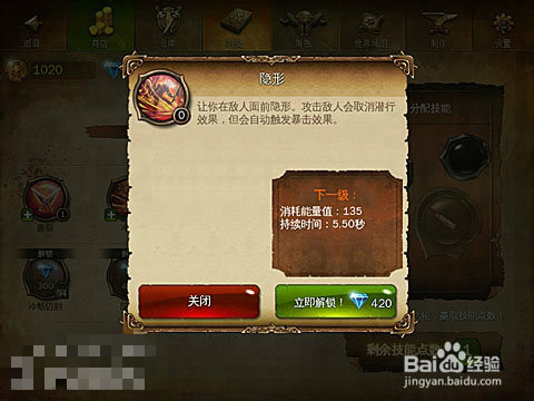 隱形:讓你在敵人面前隱形,攻擊敵人會(huì)取消潛行效果,但會(huì)自動(dòng)觸發(fā)暴擊效果,神技之一,可以常用。