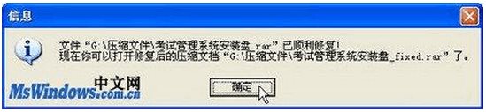 第2步,Advanced RAR Repair開始對選定的壓縮文件進(jìn)行修復(fù),完成修復(fù)后打開“信息”對話框,提示用戶修復(fù)結(jié)果,單擊“確定”按鈕即可,如圖所示。