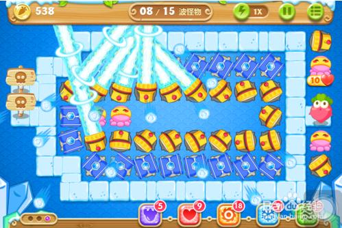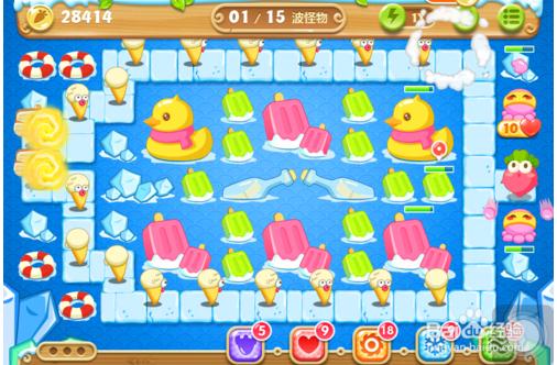 消除道具,消除完一個,馬上暫停,建炮塔,然后繼續(xù)消除,規(guī)定時間內(nèi)能夠消除游泳圈