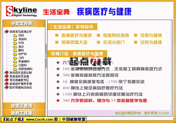 ■ 生活寶典系列軟件是世紀(jì)藍(lán)科推出的一套面向家庭用戶的工具類系列軟件,根據(jù)內(nèi)容不同共分為六套軟件。提供了日常生活中各個(gè)方面的知識(shí)大全,美觀的界面,簡(jiǎn)便的操作,使您在高速發(fā)展的信息時(shí)代可以更快捷的獲得對(duì)自身及家庭有幫助和有價(jià)值的信息。