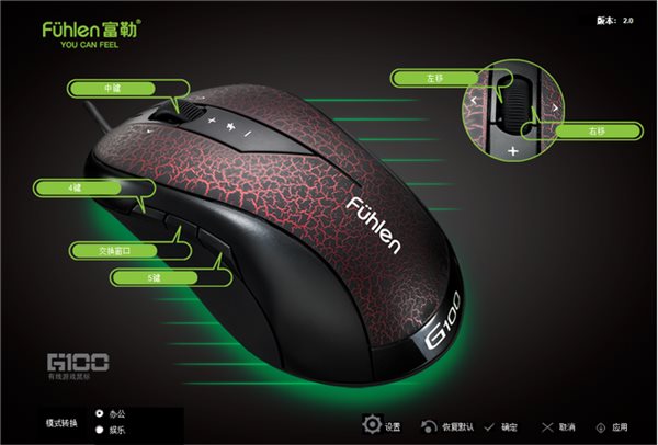富勒G100作為一款價格便宜還能自定義按鍵的鼠標(biāo)非常適合一些家庭用戶及游戲玩家,這款驅(qū)動是富勒官方發(fā)布的富勒G100鼠標(biāo)驅(qū)動,使用這款鼠標(biāo)的用戶建議安裝。
