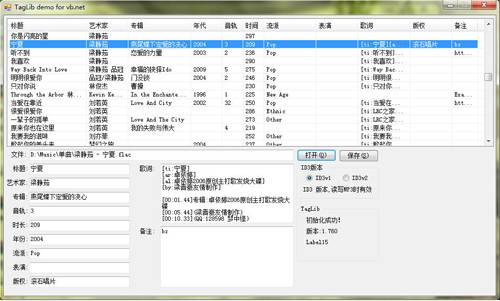 Taglib 大小不足100K,兼容 WinNT5.x與WinNT6.x支持常見(jiàn)的大部分音頻格式標(biāo)簽(包括:aac、ac3、ape、flac、m4a、mp3、ofr、ogg、tta、tak、wv、wav、wma )的讀寫(xiě)。支持idv1/2,apev2以及flac,ogg等文件格式的標(biāo)簽。