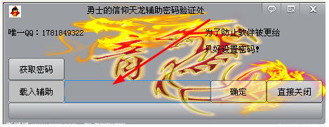 密碼是把所有字都刪除了,直接確定即可進入,換一句話說就是無密碼或者密碼為空,如下圖所示,把“請輸入密碼!”這幾個字卻掉,再點確定,即可載入輔助。