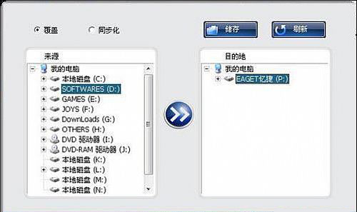覆蓋:當(dāng)您從來源磁盤扇區(qū)選擇資料夾后,可以完整備份到目的磁盤扇區(qū)。所有資料夾內(nèi)的資料將會(huì)不經(jīng)詢問直接復(fù)寫至您的目的磁盤里。
