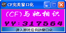 與她相識(shí)cf窗口化是由七零星空論壇制作的一款穿越火線窗口化工具,軟件非常好用,進(jìn)入游戲后自動(dòng)開(kāi)啟窗口化,操作便捷,歡迎下載體驗(yàn)。