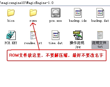 1, 將下載到的模擬器解壓縮,你會看到一個roms文件夾,這里就是存放游戲ROM文件的。