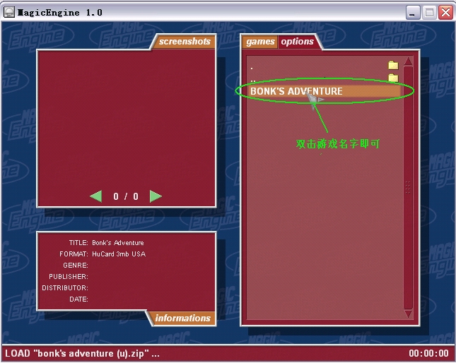 6, 看到ROM列表后,選擇某游戲的名字,雙擊即可運行,比如bonk's adventure