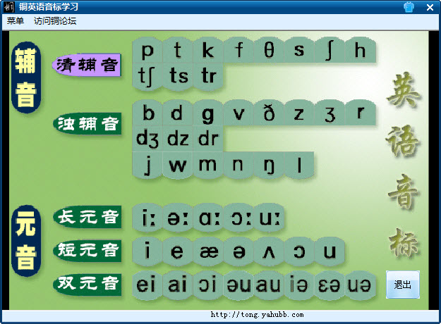 銅英語音標(biāo)學(xué)習(xí)是一套專為兒童精心打造的英語音標(biāo)學(xué)習(xí)軟件,幫助零基礎(chǔ)的兒童學(xué)習(xí)標(biāo)準(zhǔn)音標(biāo)發(fā)音,音標(biāo)發(fā)音口型等。