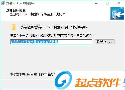 4、指定安裝位置目錄,一般不建議安裝在系統(tǒng)盤(pán),這里以安裝在“D:\河?xùn)|軟件園安裝\DirectX隨意卸”舉例,
