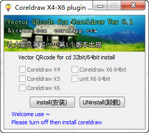 1、此coreldraw二維碼插件只支持CorelDRAW X3以上版本;