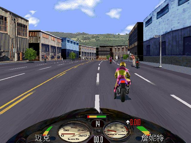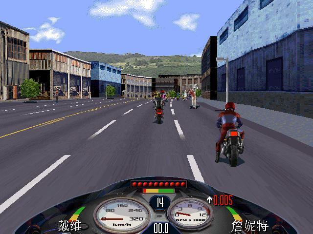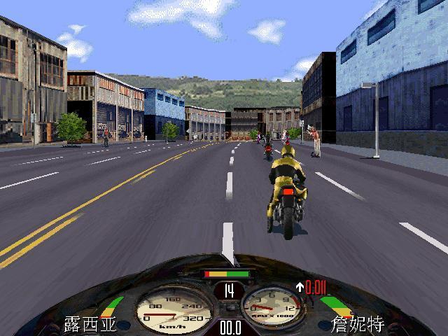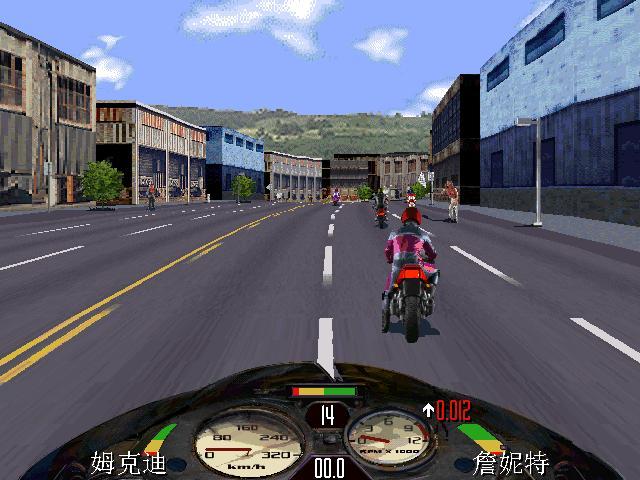 3、比賽進(jìn)行期間,按 V 鍵可查看游戲版本;按 F10 為切換/顯示/隱藏摩托車(chē)的儀表面板;小鍵盤(pán)的 + - 鍵為改變游戲背景的貼圖顏色。