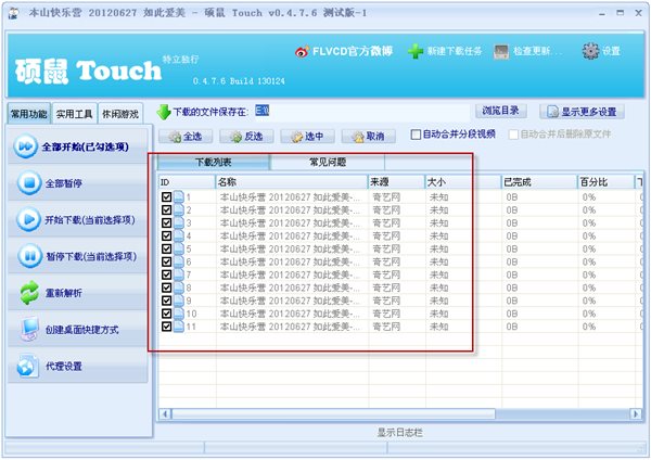在碩鼠下載器中設(shè)定好視頻存儲路徑后,點“全部開始(已勾選項)”就開始批量下載整部電視劇了。