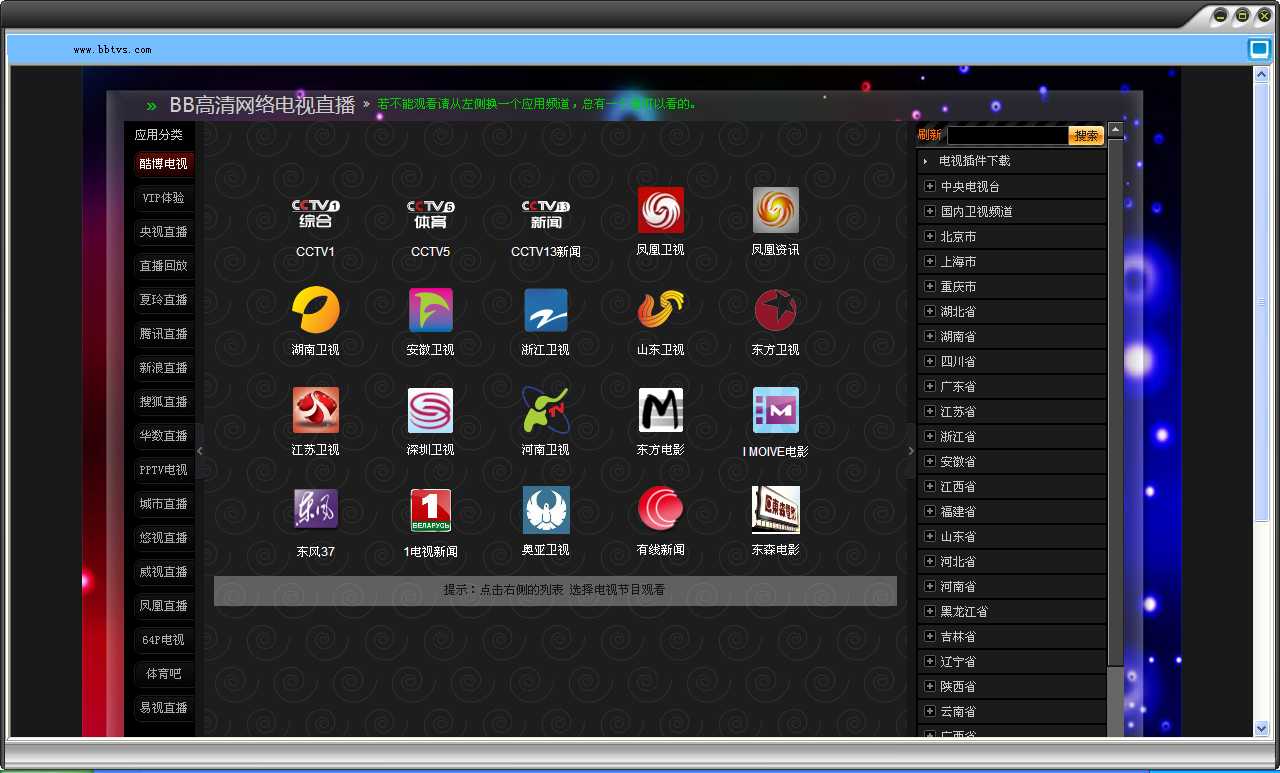 您的位置:起點(diǎn)軟件下載電腦軟件系統(tǒng)軟件BB高清網(wǎng)絡(luò)電視 3.0 綠色版