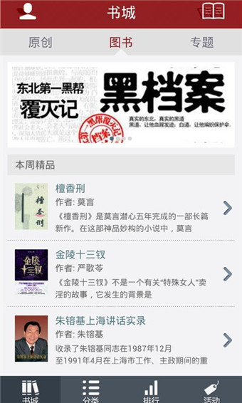 鳳凰讀書客戶端接入讀書頻道多年積累的高品質出版圖書資源,涵蓋了文學、社科、歷史、軍事等優(yōu)質內(nèi)容;原創(chuàng)頻道旗下眾多優(yōu)秀作者發(fā)表的獨家熱門小說、文學作品也可直接閱讀;更匯聚了國內(nèi)最新最熱的網(wǎng)絡小說。并且,大部分內(nèi)容對用戶免費。