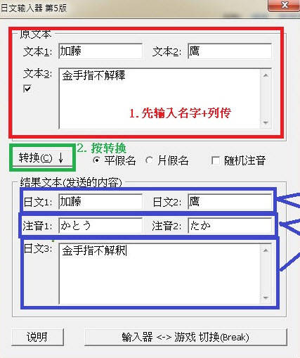 發(fā)送轉(zhuǎn)換結(jié)果日文2的熱鍵