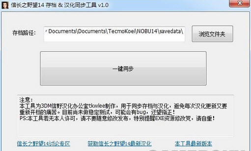 信長(zhǎng)之野望14存檔&漢化同步工具 v1.0 免費(fèi)版 信長(zhǎng)之野望14存檔&漢化同步工具 v1.0 免費(fèi)版