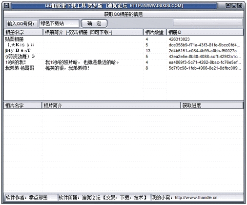 軟件應(yīng)用很簡單,輸入QQ號碼,然后確定 在要下載的相冊上雙擊即可!