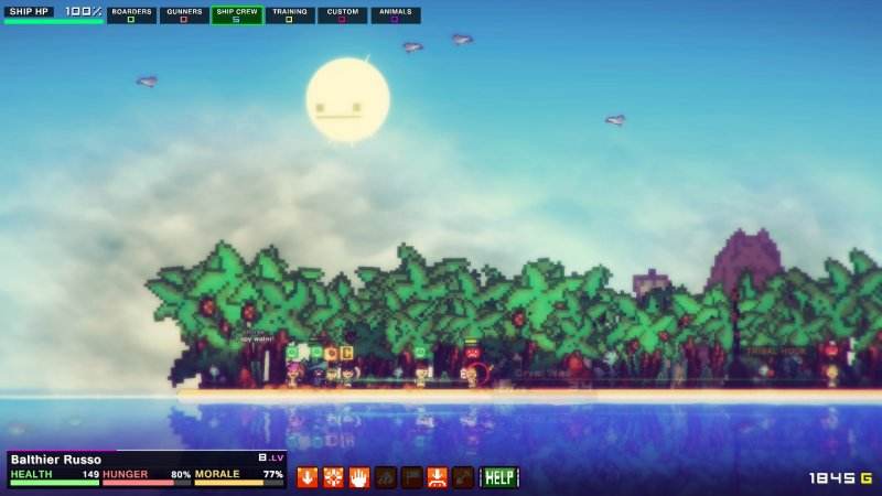 雖然本作是一款2D像素類游戲,但是并不像當(dāng)前大熱的一些游戲有著超高的自由度,游戲中能夠做的事情不少,但自由度有限。玩家所控制的船長以及船員的成長是非常自由的,從加點到裝備的選擇,還有技能的學(xué)習(xí)。