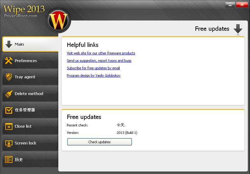 Wipe強(qiáng)力緩存刪除工具是一款免費(fèi),易用和強(qiáng)大的瀏覽器緩存清理工具,可以清除用戶瀏覽器的歷史記錄,Index.dat文件,Cookie ,緩存, 瀏覽器產(chǎn)生的臨時文件,搜索記錄等其他網(wǎng)絡(luò)瀏覽產(chǎn)生的可能泄露個人隱私的遺痕。使用DODD 5220.22 方式進(jìn)行擦除,徹底杜絕相關(guān)數(shù)據(jù)被恢復(fù)的可能,充分保護(hù)您的隱私,支持IE, FireFox, Opera, Chrome等主流的瀏覽工具.