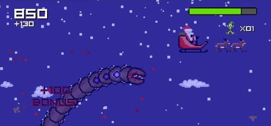 《超級蠕蟲大戰(zhàn)圣誕老人 Super Mega Worm Vs Santa Saga》是一款像素風(fēng)格的動作休閑游戲,主題略顯惡搞,那控制的可不是圣誕老人,而是一直巨大的蠕蟲,吃掉線路上的所有生物,包括那些反抗的人類,讓你變得更大,跳得更高,獲得新的破壞性的超級能力,成為不可阻擋的力量,超大型蠕蟲!【游戲特色】