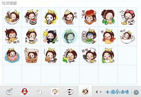【概括介紹】吃貨賣甜屬于陌陌表情的最新之作,吃貨賣甜她是一個可愛的吃貨女孩哦,24小時什么都可以忘記就是不能忘了吃,歡迎下載使用。【使用方法】陌陌吃貨賣甜QQ表情包為eip文件,雙擊后會自動安裝到表情分組中。