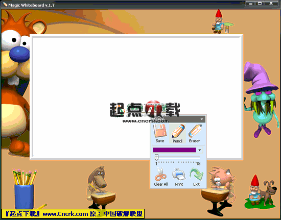 Magic Whiteboard V2.0 英文綠色特別版 Magic Whiteboard 是一款為你的孩子和全家人帶來大量樂趣的令人難以置信的涂鴉游戲軟件。Magic Whiteboard 可以被用于最多5臺計(jì)算機(jī)聯(lián)網(wǎng)的一個家庭計(jì)算機(jī)網(wǎng)絡(luò),因此你和孩子們可以在一起同時畫圖。這款充滿魅力且簡單易用的游戲軟件擁有彩色的圖形和動畫卡通人物。Magic Whiteboard 允許采用諸如 BMP, JPG, GIF 等格式打印和保存繪制的圖畫