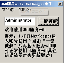 360隨身wifi netkeeper殺手是針對360隨身wifi設(shè)備而開發(fā)的一款破解小軟件,純綠色版,完全免費,能夠?qū)崿F(xiàn)一鍵破解的功能,讓你的wifi設(shè)備能夠正常工作不掉線