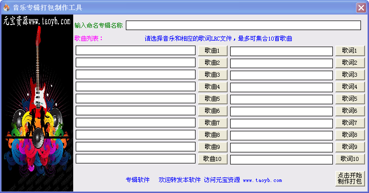 1.本打包工具最多可添加10首歌曲
