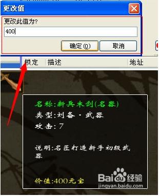 大家看到那個(gè)400就是我們修改的價(jià)格,接下來(lái)我們看武器的攻擊是多少。