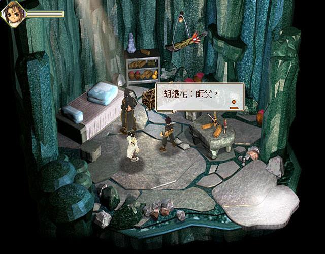 來(lái)到客棧左邊的場(chǎng)景,調(diào)查在場(chǎng)景中的民房,點(diǎn)二樓的鏡子時(shí),會(huì)出現(xiàn)密道入口通向一個(gè)山洞。進(jìn)入山洞后遇到小孩阿星,一路追隨他來(lái)到一個(gè)有大石頭的場(chǎng)景, 調(diào)查石頭發(fā)生劇情,劇情后來(lái)到道具店。