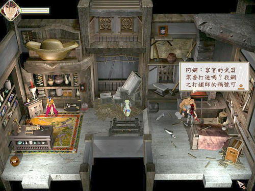 (3)穿過(guò)集市后,遇到客棧老板(此處是否遇到老板不影響后面情節(jié)),林寒青讓西門去借燒炭,來(lái)找客棧老板,觸發(fā)情節(jié)