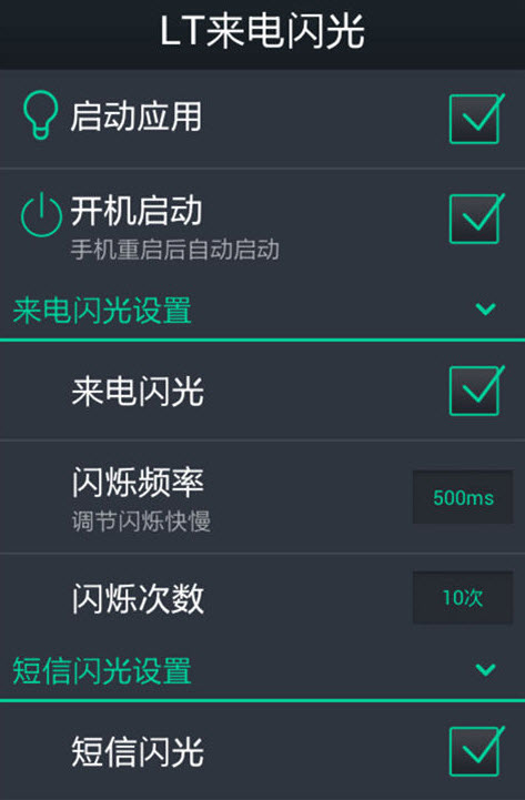 安裝LT來電閃光軟件,當(dāng)有新來電,新短信時,閃光燈會根據(jù)預(yù)設(shè)的閃爍頻率和閃爍次數(shù)進(jìn)行閃爍,讓人更容易發(fā)現(xiàn)并在第一時間接通重要來電或查看短信,適合在酒吧,卡拉OK和其它熱鬧公共場所使用,現(xiàn)在還可以設(shè)置QQ,微信在通知欄收到新信息時閃光喔!(注:手機(jī)需要支持閃光燈設(shè)備)。【更新日志】