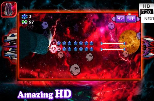3、飛船自動飛行,點擊屏幕即可控制戰(zhàn)機上升;