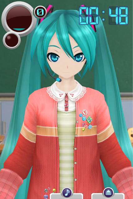 初音未來安卓版雖然是個音樂播放器但是卻糅雜了很多其他的功能,比如你在播放音樂時可以看著初音和你一起享受音樂跟著旋律歡樂搖擺。你還可以給初音更換衣服和耳機,免費衣服有兩件,還有兩種免費的耳機可以更換,還有兩套免費的頭發(fā)可以更換。比起豐富的自定義功能,原本的音樂播放功能就有點略雞肋了。初音未來游戲可以識別出設(shè)備上的音樂文件,但是不支持播放列表,也就是說你每次打開軟件都必須重新選擇一次本次需要播放的歌曲。軟件支持播放,暫停,音量調(diào)節(jié),進(jìn)度調(diào)節(jié),循環(huán)模式,上下曲等功能。