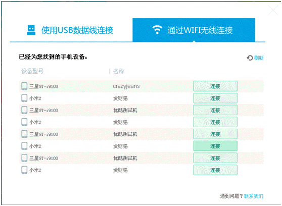 優(yōu)酷手機助手如何連接您的手機?點擊客戶端首頁“連接手機”按鈕,開始進行連接,您可以選擇USB連接、WI-FI連接兩種連接方式,USB連接就是通過數(shù)據(jù)線連接,wif連接通過無線網(wǎng)絡(luò)進行連接,首先我們來看一下USB連接: