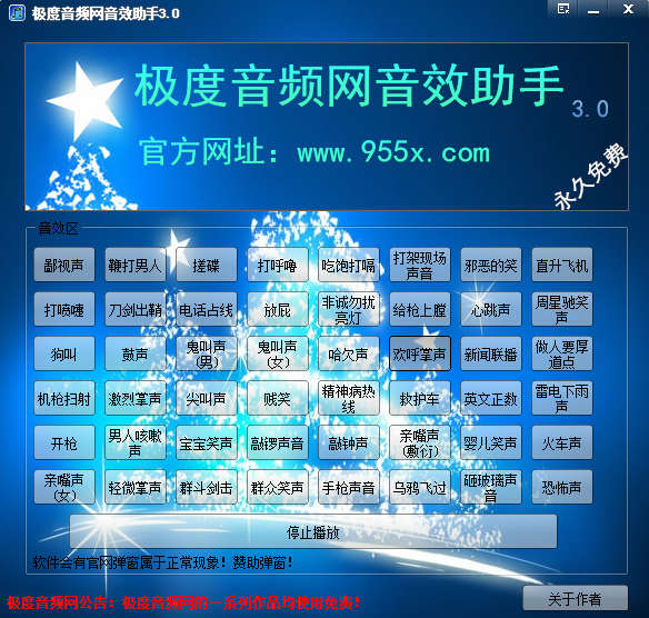 極度音頻網(wǎng)音效助手是一款實(shí)用的主持音效輔助。適用與yy、qt、新浪UC等各種聊天室中。內(nèi)置幾十種音效供主持方便使用。讓您的主持時(shí)亮點(diǎn)多多。本音效助手界面簡潔,體積小巧。兼容各種操作系統(tǒng)!