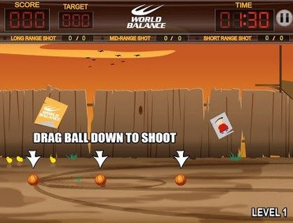 玩家需要控制不同位置的籃球的角度和力度,是籃球能正確命中方可得分,在規(guī)定時間內達到分數要求的,才可以獲得3星并開啟下一關。