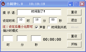 落日故鄉(xiāng)小鬧鐘是一款功能簡單的電腦小鬧鐘。操作非常簡單,只需填好時間就會在時間到時顯示提示語和聲音提醒,有需要的可以下載。玩家們快來試試吧。