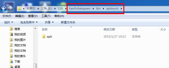 2、然后大家找到下面小編圖上的文件夾這條路徑,找到apktools這個(gè)文件夾