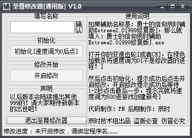 這時(shí)候往至尊修改器V1.0的綁定程序名稱里寫入輔助名稱