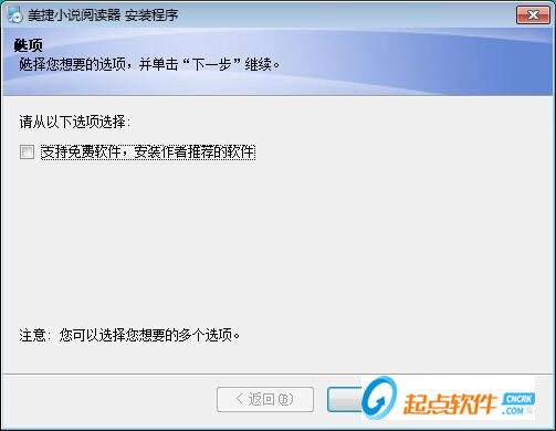 5.我們還要選擇是否安裝作者推薦的軟件,小編選擇了不安裝。點擊完成即可完成美捷小說閱讀器軟件安裝。